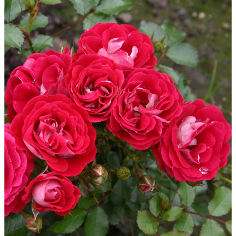 This variety produces double, rounded blooms (4–5 cm) in abundant clusters. The flowers are a rich velvet red with a striking silver reverse, creating a luxurious two-tone effect that stands out beautifully in any setting.